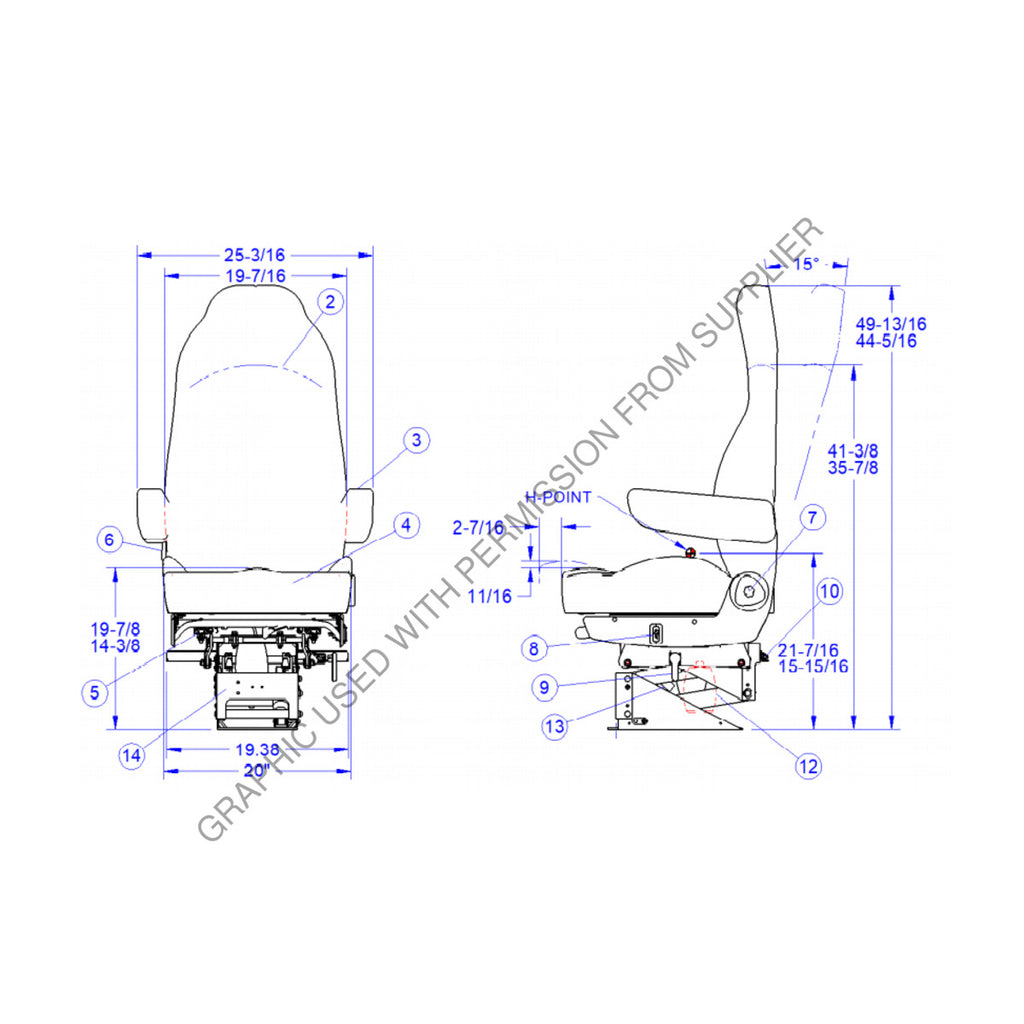 SET 189801FN635 SEAT-HERITAGE SILVER HB 20 15D GRY TUFF Seats Inc